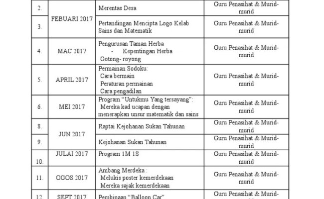 Rancangan pengajaran aktiviti kokurikulum persatuan sains ppt download. Aktiviti tahunan persatuan matematik 2018 bulan perkara catatan januari 1) perjumpaan pertama. Aktiviti tahunan persatuan matematik 2018 .